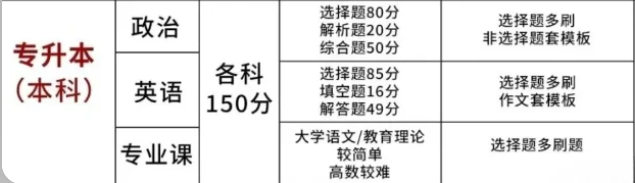 專升本:英語(yǔ)、政治、高等數(shù)學(xué)(二)。