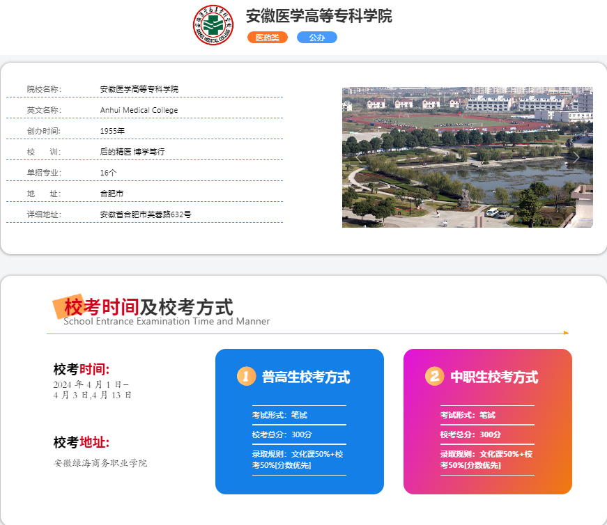 學校名稱:安徽醫學高等專科學校