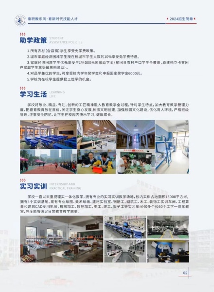 專業設置:涵蓋了建筑施工、建筑裝飾、工程造價、公路與橋梁工程、機電一體化、數控加工、電子商務、建筑設備安裝、計算機網絡應用、會計等多個專業方向。