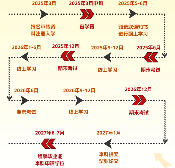 預(yù)計(jì)畢業(yè)時(shí)間:考生從2025年春季入學(xué)開始計(jì)算,經(jīng)過兩年半的學(xué)習(xí)(即預(yù)計(jì)至2027年秋季左右),如符合畢業(yè)要求,即可領(lǐng)取畢業(yè)證書。但請注意,具體畢業(yè)時(shí)間可能因個(gè)人學(xué)習(xí)進(jìn)度、學(xué)校安排等因素而有所差異。