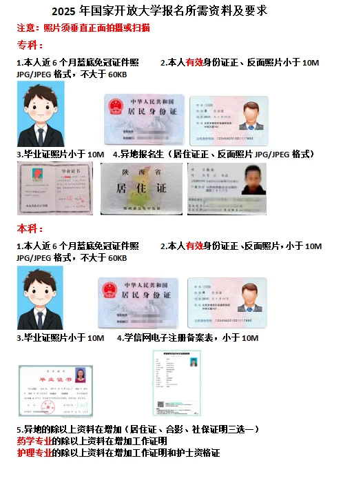專科起點(diǎn)本科:考生需提供經(jīng)教育部核準(zhǔn)的國民教育系列高等專科(含專科)以上學(xué)歷證書原件及復(fù)印件,以及電子注冊備案表(如適用)。