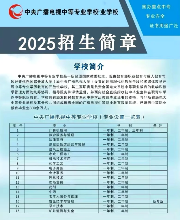 教學系統:中央廣播電視中等專業學校與44所省級電大中等專業學校及其分校共同組成遍布全國的廣播電視中等職業教育教學系統。