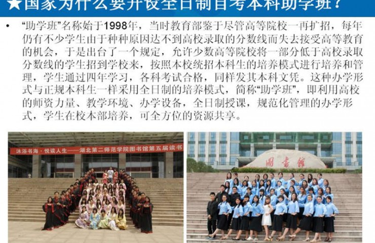 助學班學生無統招學籍,但擁有省教育廳考籍,畢業證書標注“高等教育自學考試”字樣。