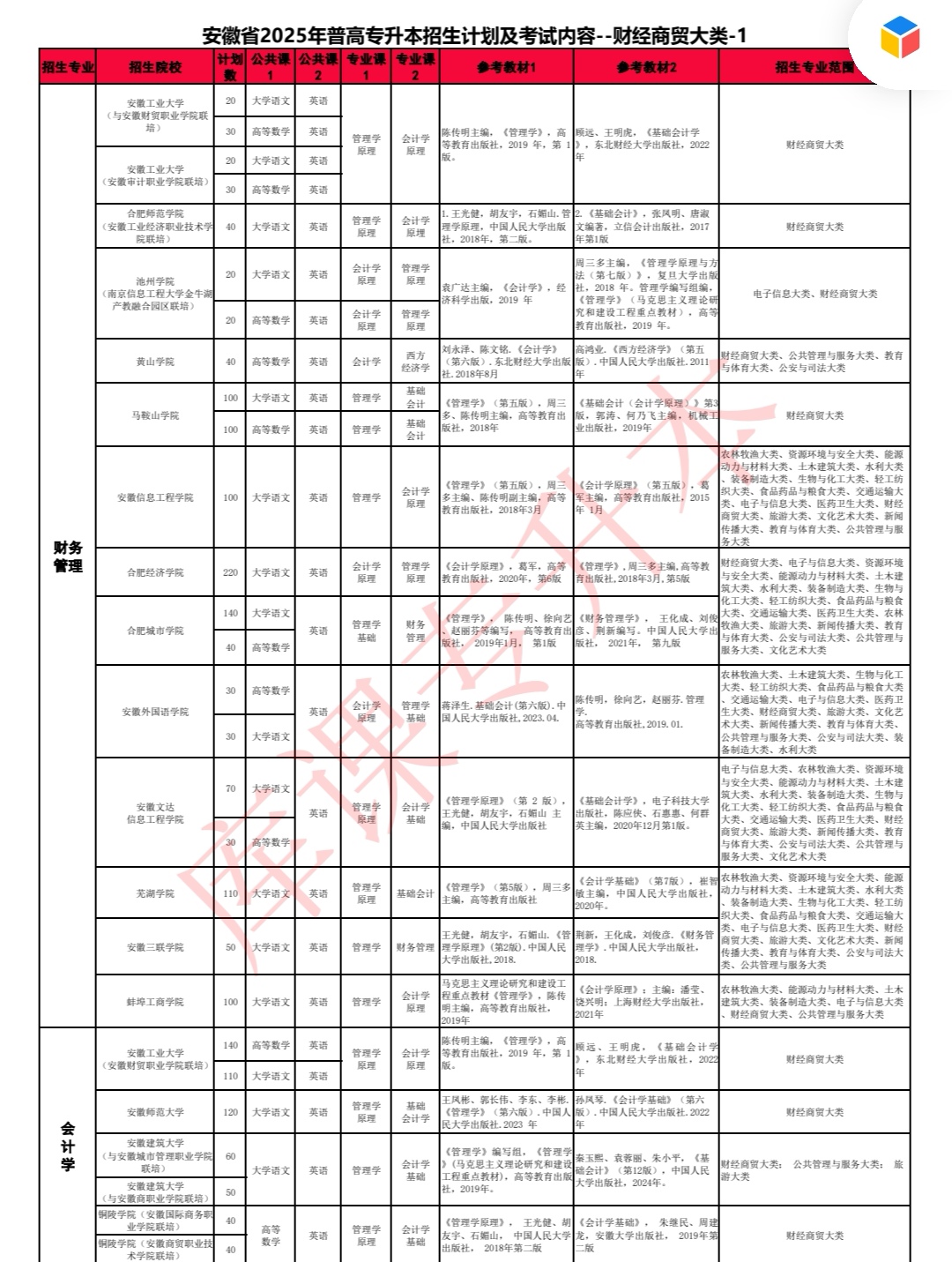 庫課與安徽省內多所本科院校合作,涵蓋熱門專業,例如:
