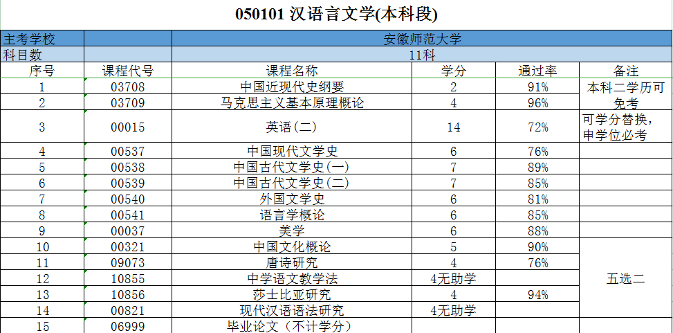 安徽師范大學成人自考專升本漢語言文學專業的考試科目通常包括必修課和選修課兩部分。以下是根據往年情況整理的考試科目示例,具體科目可能會根據年份和考試計劃有所調整: